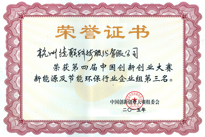 4.榮獲2015年第四屆中國創(chuàng)新創(chuàng)業(yè)大賽新能源及節(jié)能環(huán)保行業(yè)企業(yè)組第三名