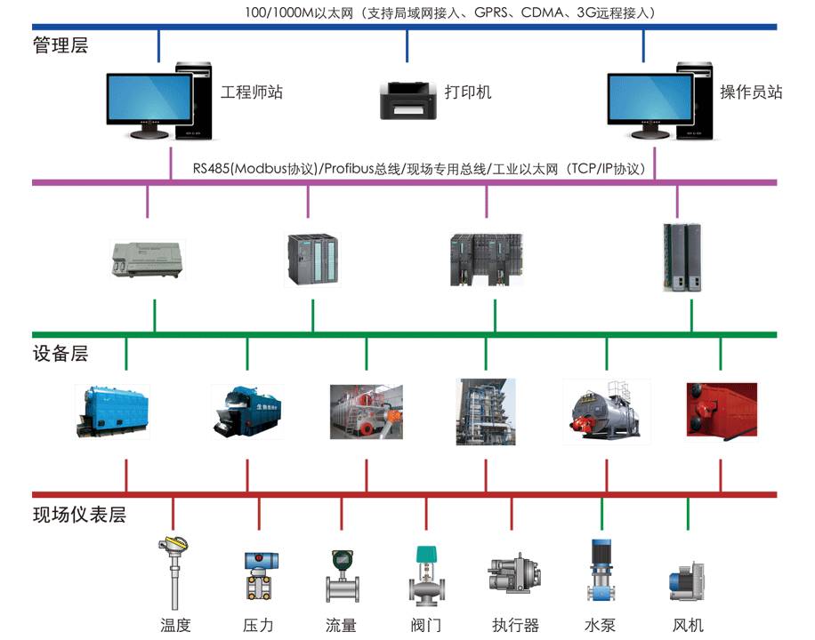 德聯科技一直堅持工業能源行業的電氣全集成理念,即將鍋爐控制、鍋爐房輔機控制、上位監控系統、鍋爐房配電動力系統等強電和弱電系統集成為一個完整的電氣包,形成了具有德聯特色的工業能源控制系統(DELIN Multi-Boiler Control System,簡稱DL-MBCS)。