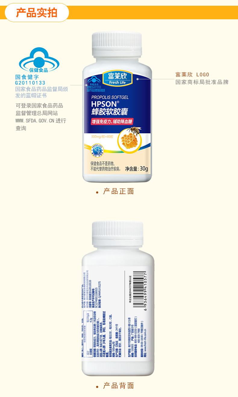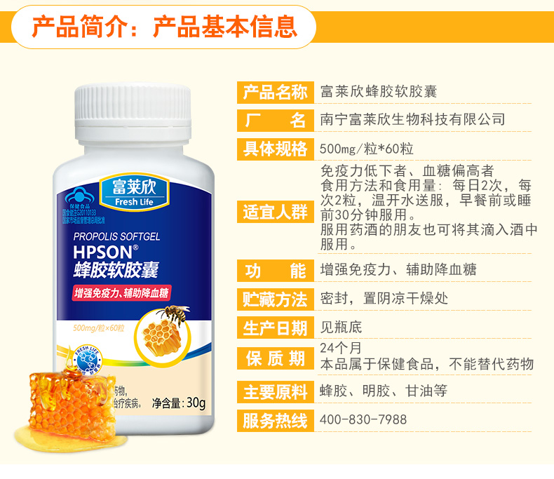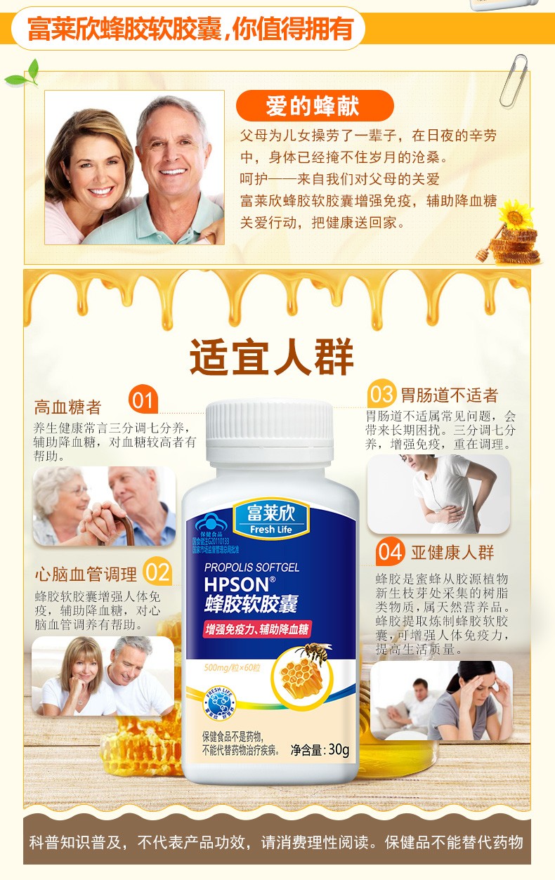 富萊欣牌蜂膠軟膠囊