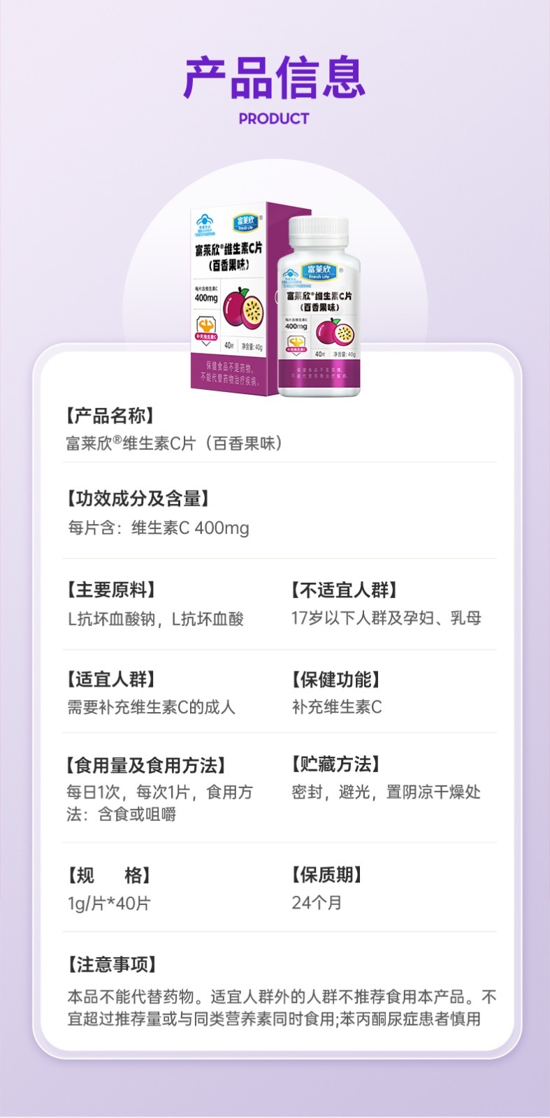 富萊欣維生素C片(百香果味)