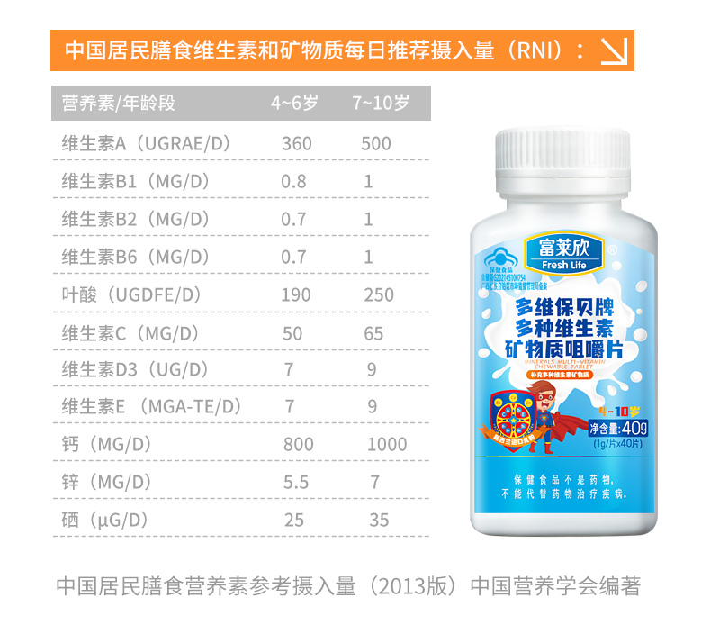富萊欣多維保貝牌多種維生素礦物質咀嚼片